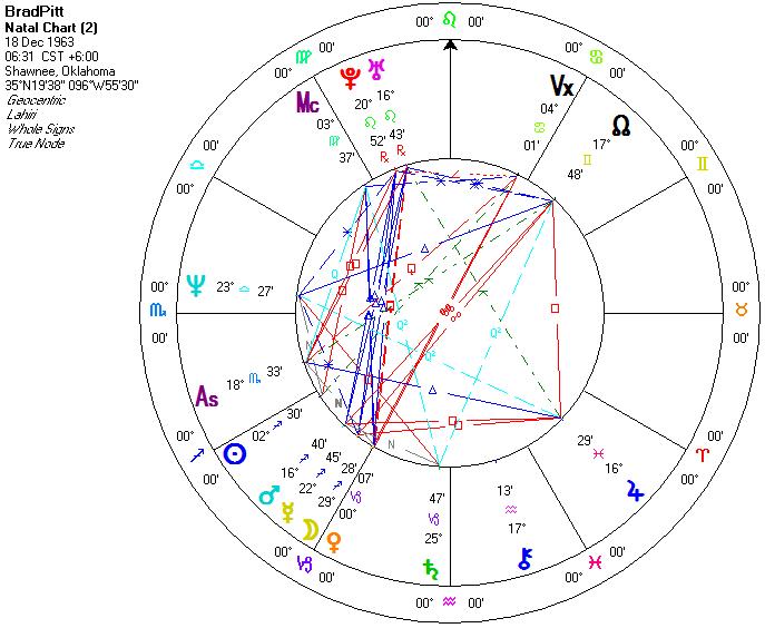 Brad Pitt has his Mars in Sagittarius - alongside the Sun, Mercury and the Moon! But not only that, he has Mars in an exact square to Jupiter, so this expansive personality truly knows no limits.